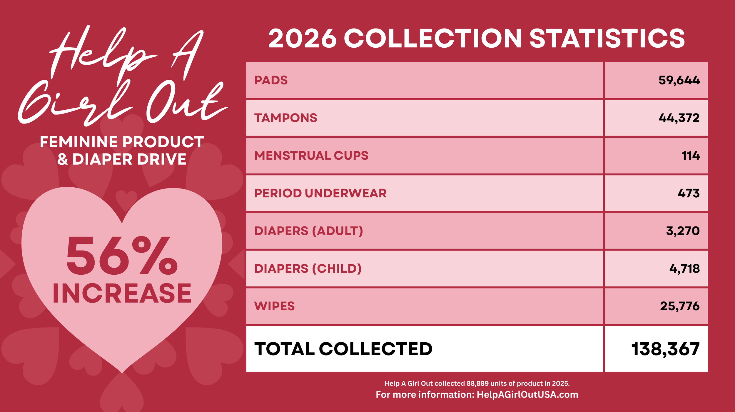 The Help A Girl Out drive is bringing back dignity and confidence to women and girls who struggle with period poverty. With the support of our community and our partners’ dedication to the movement, we continue to provide necessary products to menstruators throughout Berks and Schuylkill Counties.